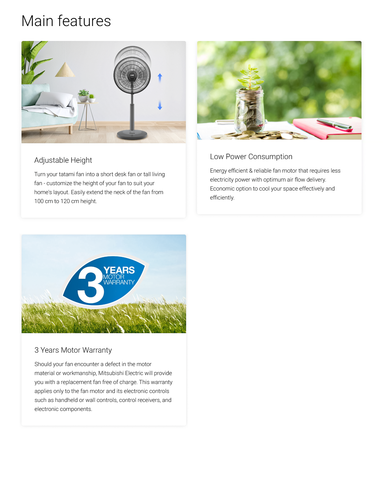 3 Years Motor Warranty Premium Safety Standard Non-Self Flammable Material Double Fuse Protection Conceal Motor 5-Star Rating Adjustable height