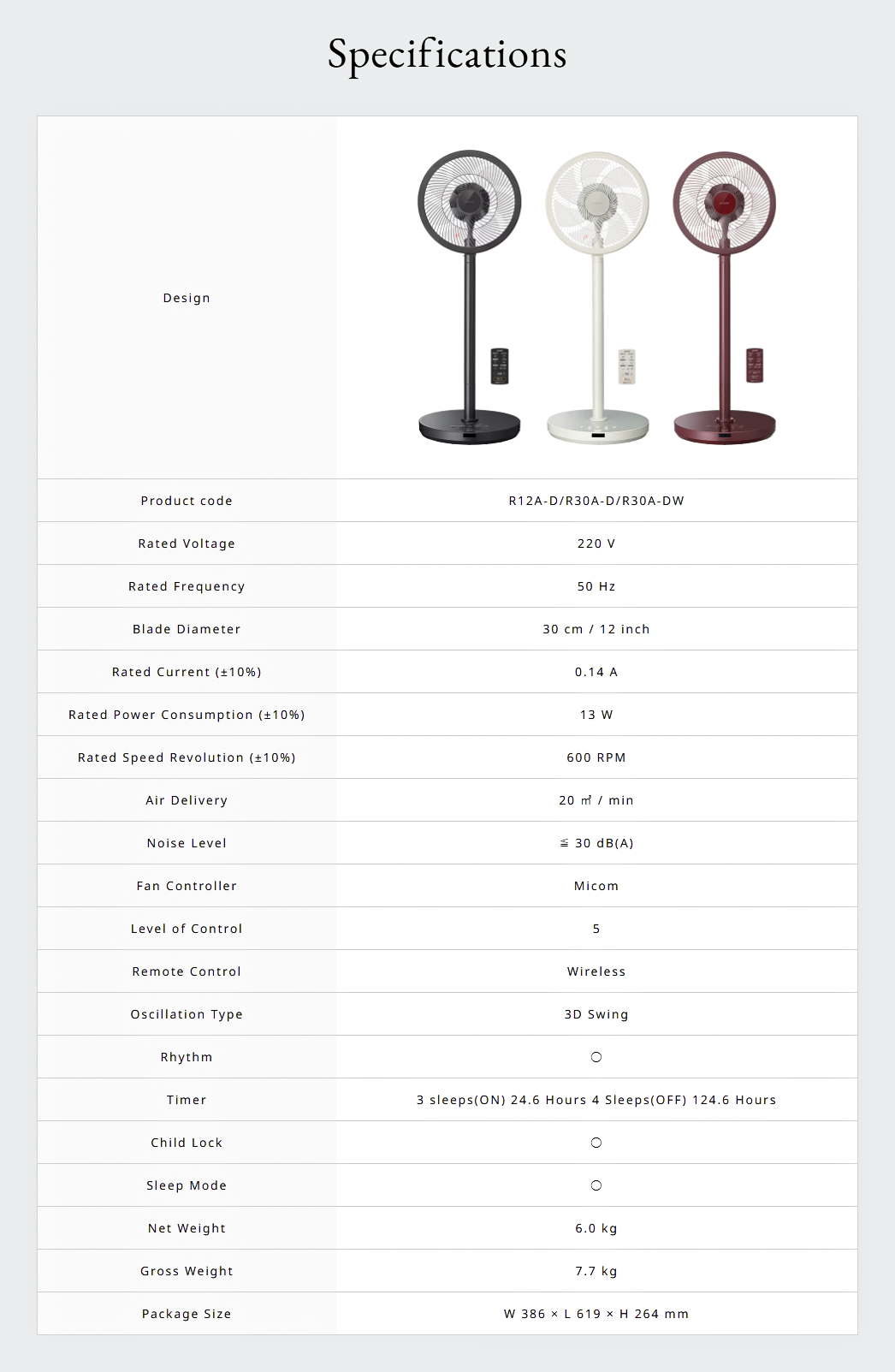 MITSUBISHI 12'' Tatami Oscillation Fan Black R12A-DW-P