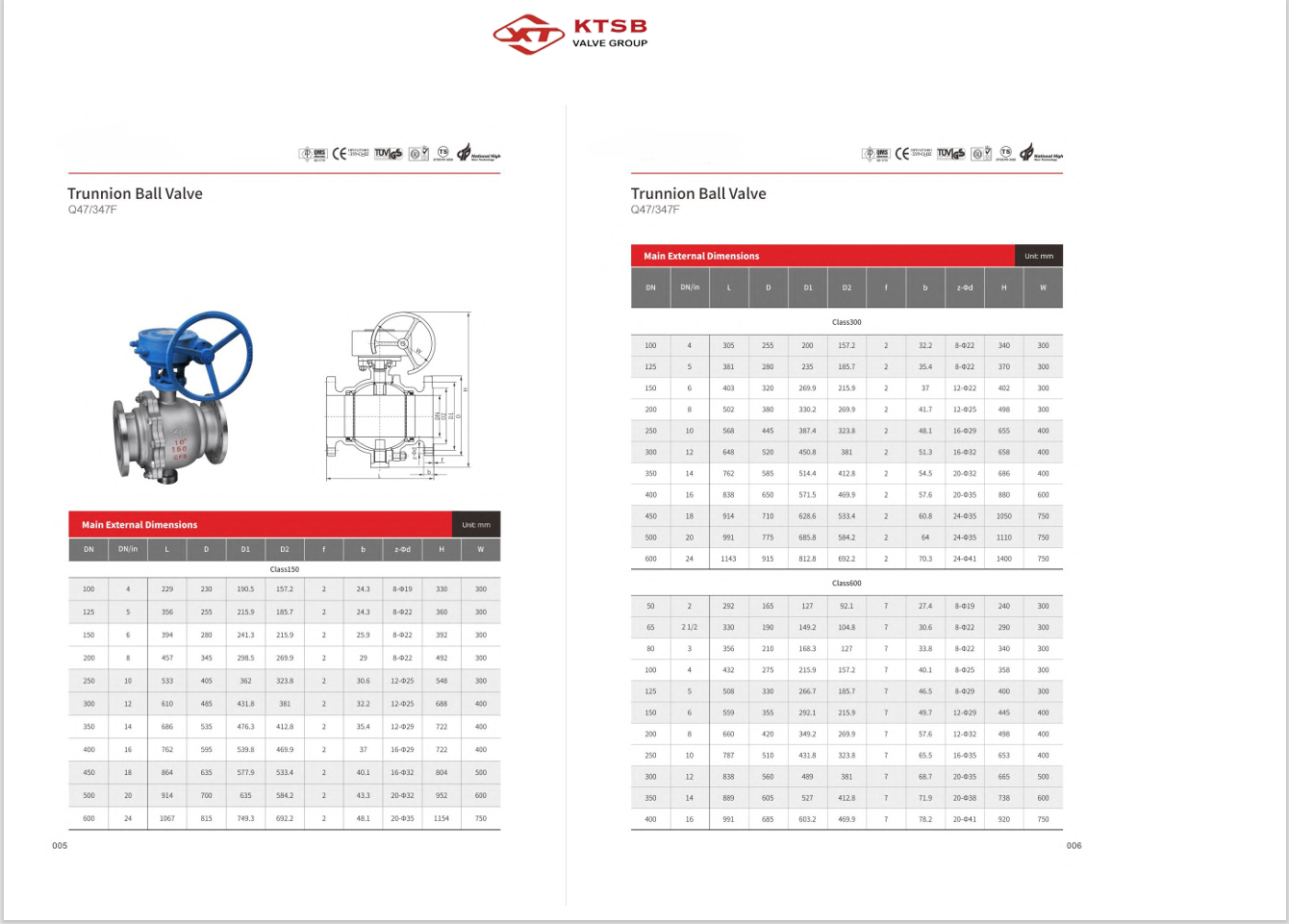 The KTSB Valve Group Trunnion Ball Valve is engineered for superior sealing performance and long-term reliability in demanding industrial environments. Designed to handle high pressure and large pipeline applications, this trunnion-mounted ball valve ensures smooth operation, minimal torque, and enhanced safety.