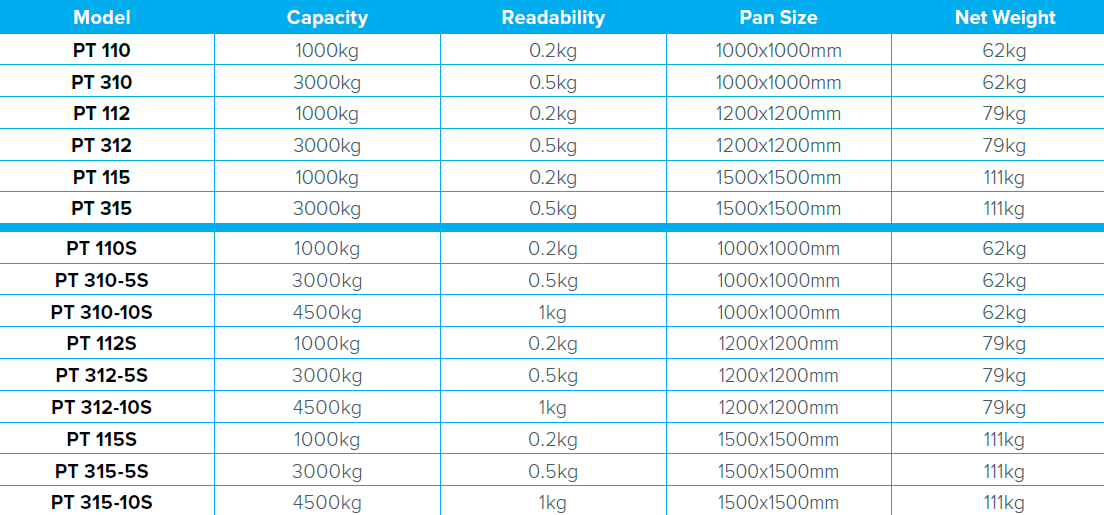 The PT and PT-S platform scale is designed to weigh pallets, crates and large containers on warehouse and factory floors. PT platforms are compatible with several Adam indicators that can be used for checkweighing, parts counting and dynamic animal weighing.