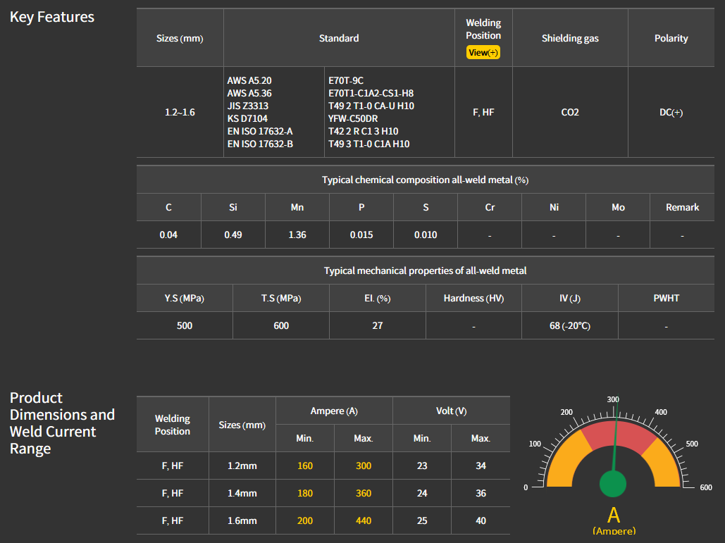 - AWS: A5.20 : E70T-9C