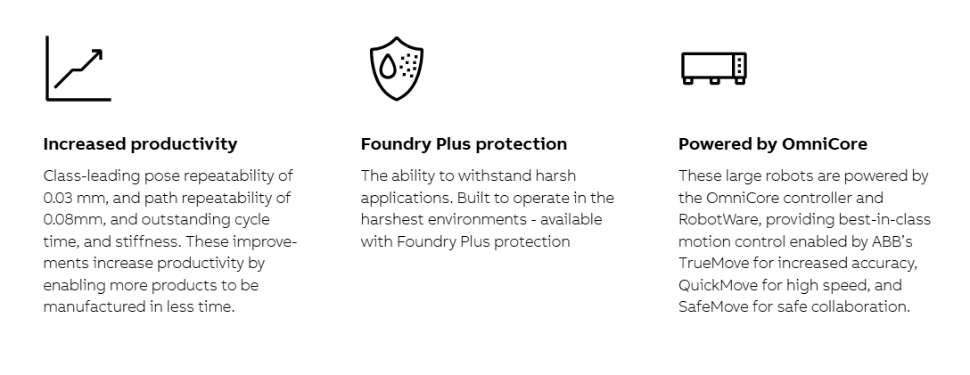 These large robots are in response to our customers’ need for more choice and greater flexibility and are designed to help customers build consistency and resilience across a range of industries including automotive, Electric Vehicle, general industries, foundry, construction, metal, electronics, food and beverage, and logistics.