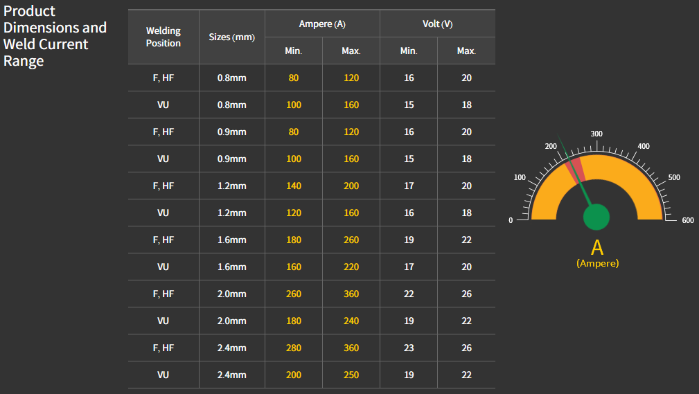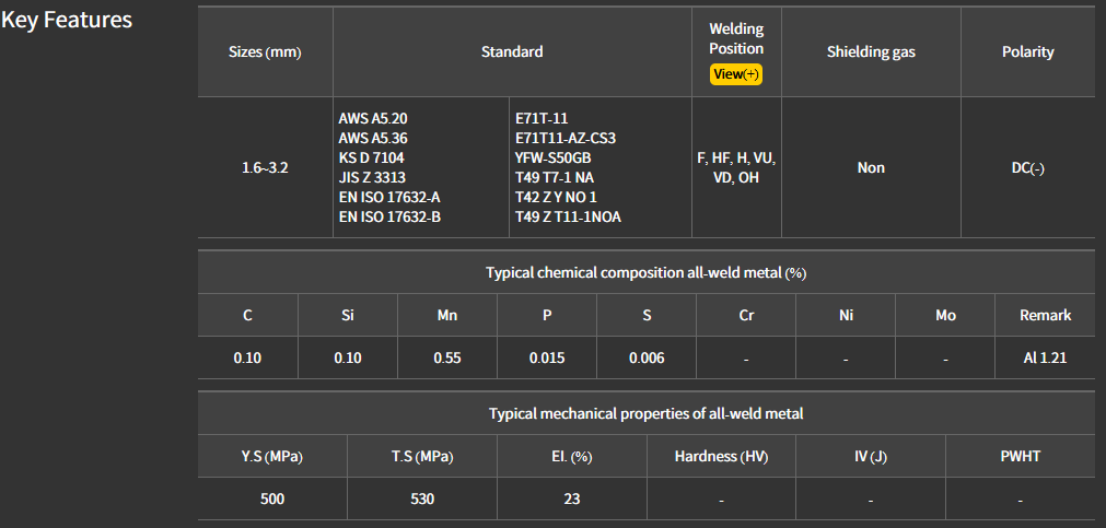 For 490MPa high tensile steel and self-shielded wire to facilitate welding outdoors. General fabrication and structural work K(ASTM A36 Gr. All; A109 Gr.A)