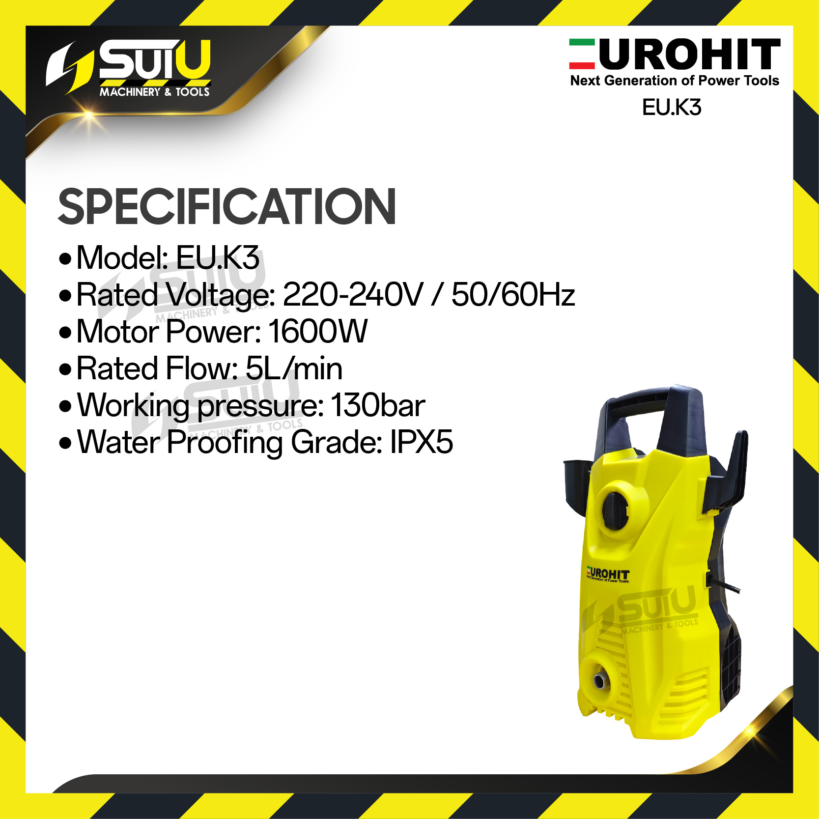 EUROHIT EU.K3 / EUK3 130Bar High Pressure Washer / Pencuci Tekanan Tinggi 1600W