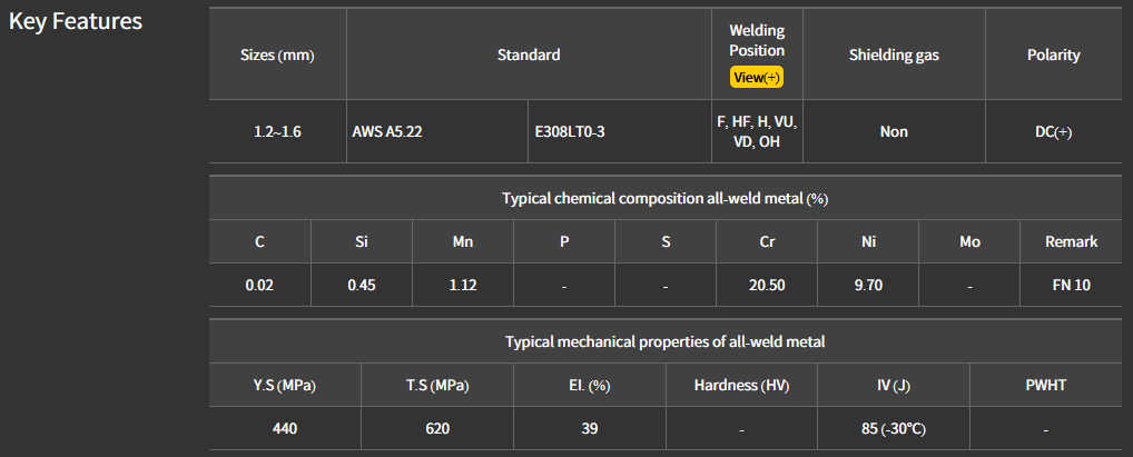 18%Cr-8%Ni austenitic STS Self-shielded FCW