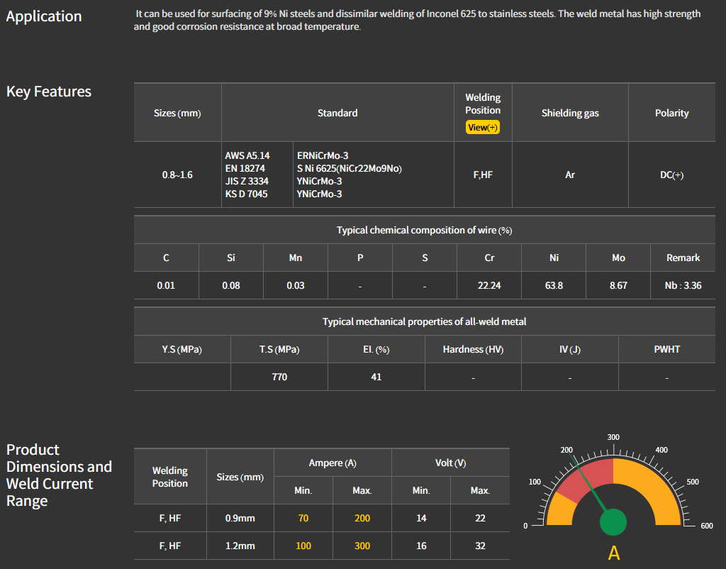 - EN: 18274 : S Ni 6625(NiCr22Mo9No)