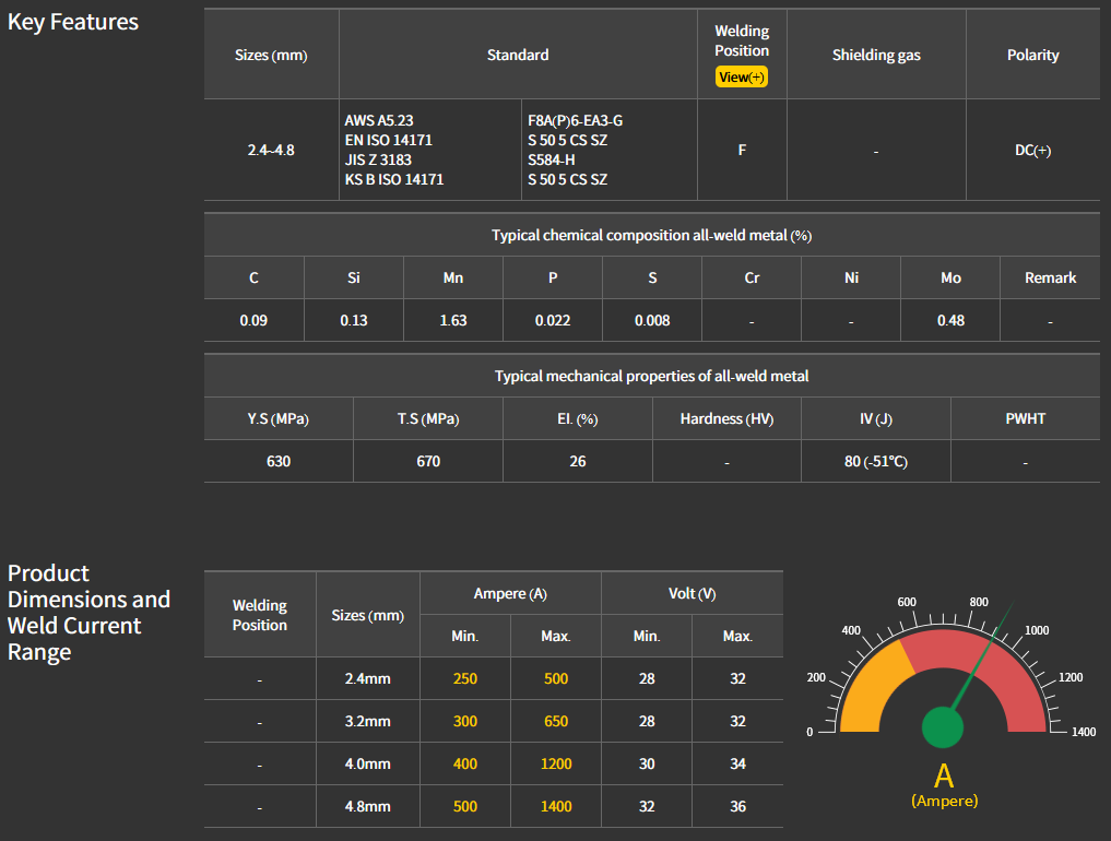 Single and multi-layer welding 560MPa high tensile strength steels for structural steels, bridges and general fabrications. Neutral flux for multi-pass welding. Excellent impact toughness at low temperature