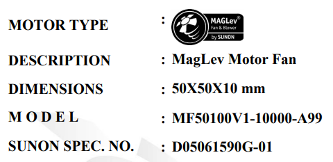 SUNON MF50100V1-10000-A99 50x50x10MM MAGLEV MOTOR FAN