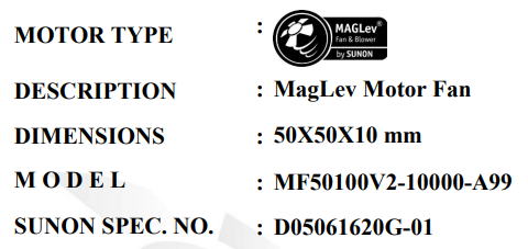 SUNON MF50100V2-10000-A99 50x50x10MM MAGLEV MOTOR FAN