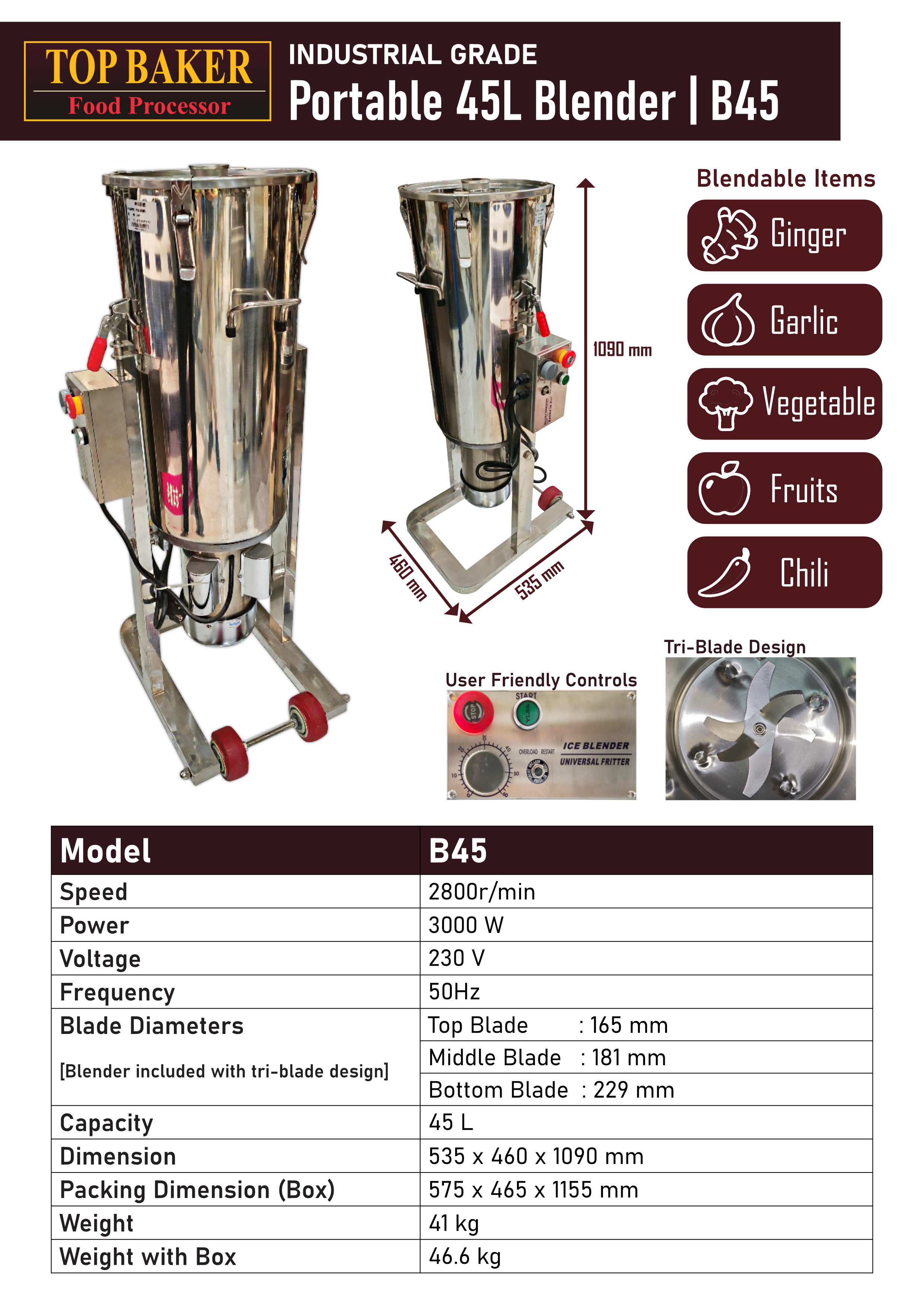 Top Baker | Industrial Blender | 45L | 3000W | B45