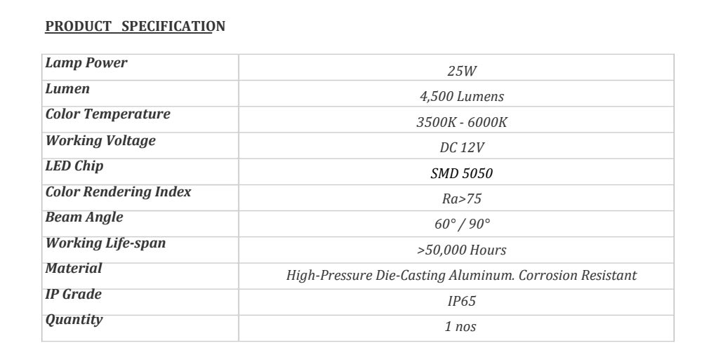 Illuminate large outdoor and industrial environments with superior performance using the INFINITY HIGH POWERED LED FLOODLIGHT TUNABLE 3500K-6000K 50,000HRS IP65 CRI75 [25W/50W] [4500LM/9000LM] [60D/90D]. Designed for power, durability, and versatility, this LED floodlight delivers exceptional brightness and adjustable color temperature — making it ideal for warehouses, factories, parking lots, security lighting, and commercial spaces.