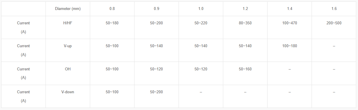 - Suitable for welding 620N/mm2 grade steel.