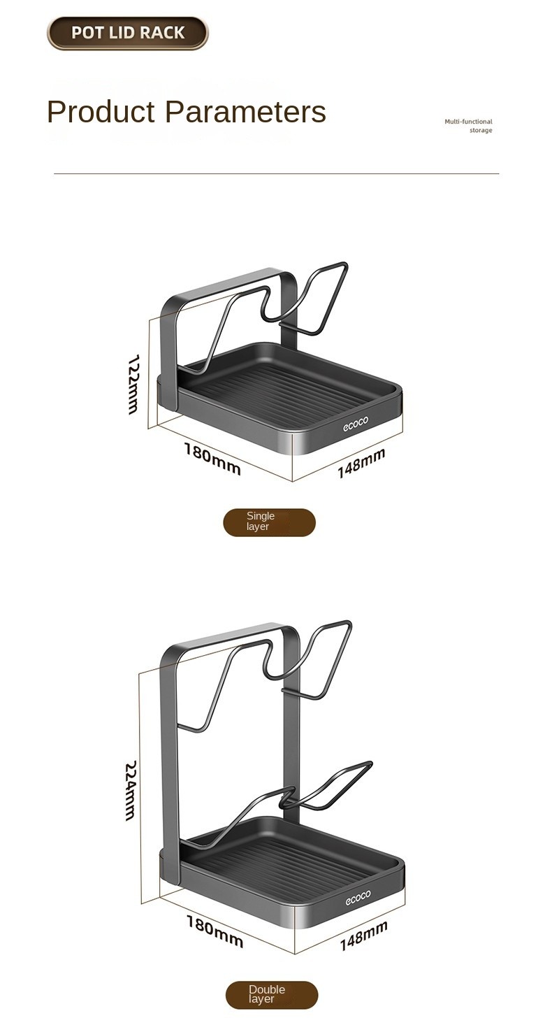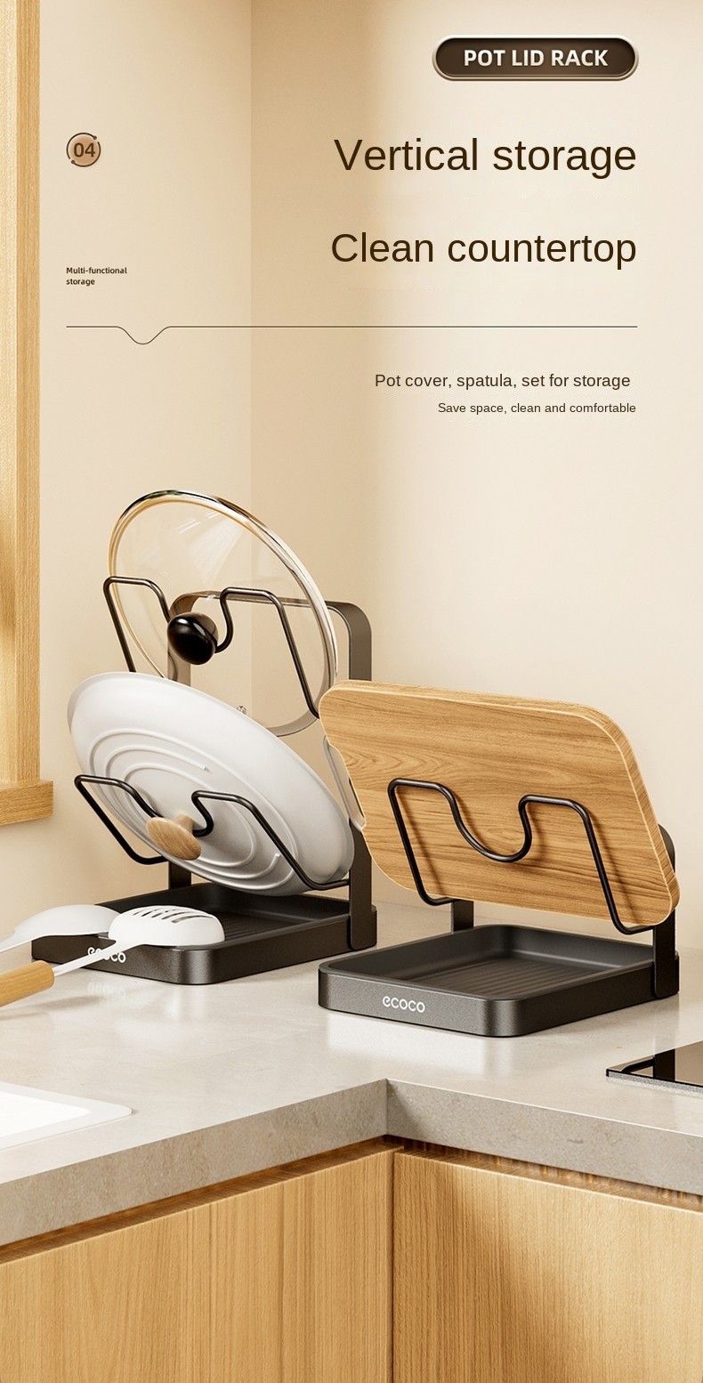 Multi-Purpose Design Holds pot lids, chopping boards, spoons, spatulas, etc.