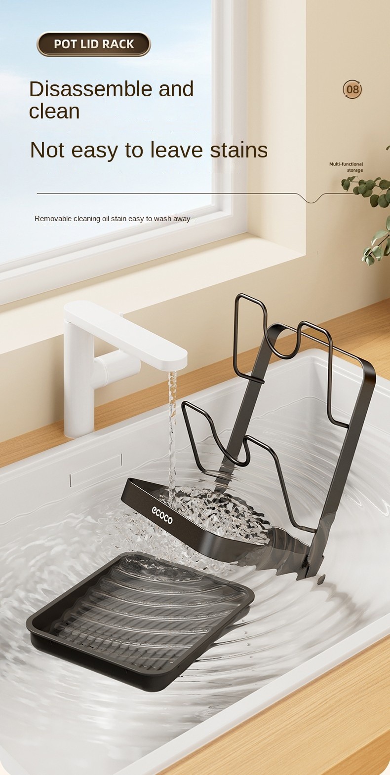 ECOCO Kitchen Lid Rack Organizer with Drip Tray