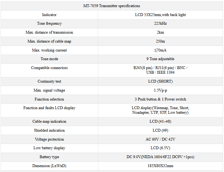 LCD display, Wire tracing, LAN cable mapping, 9 different tone cable status indication