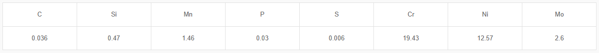 Weld metal is 18.5% Cr-12.5% Ni-2.5% Mo, which provides excellent corrosion resistance