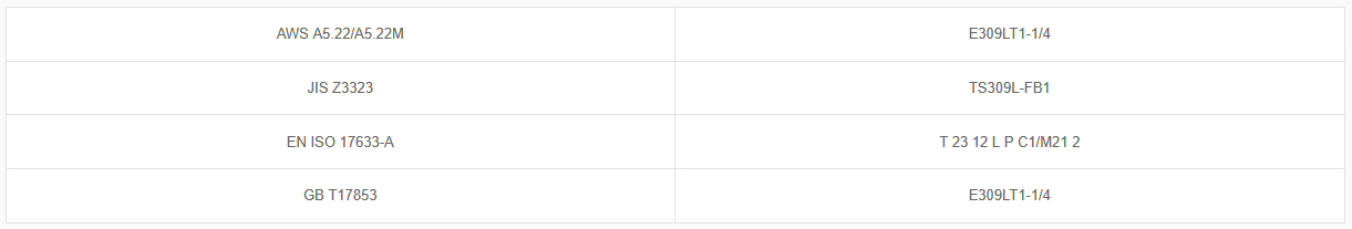 Weld metal is austenitic structure with 22.5% Cr-12% Ni. Suitable for joining 304 stainless steel to carbon steel or low alloy steel