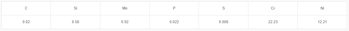 - Weld metal is austenitic structure with 22.5% Cr-12% Ni