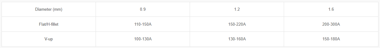 - Stable arc, good slag removal, low spatters, X-ray quality welds and good penetration