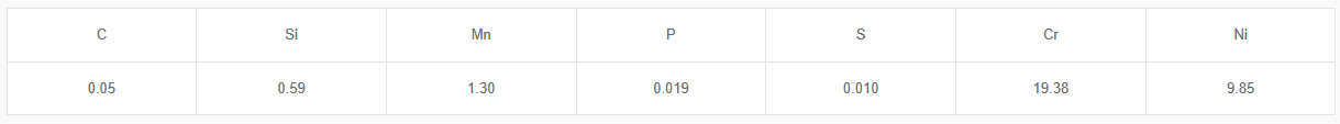 The weld metal has an austenitic structure containing 19.5% Cr and 10% Ni. It is suitable for welding AISI 301, 302, 304, and 305 stainless steels