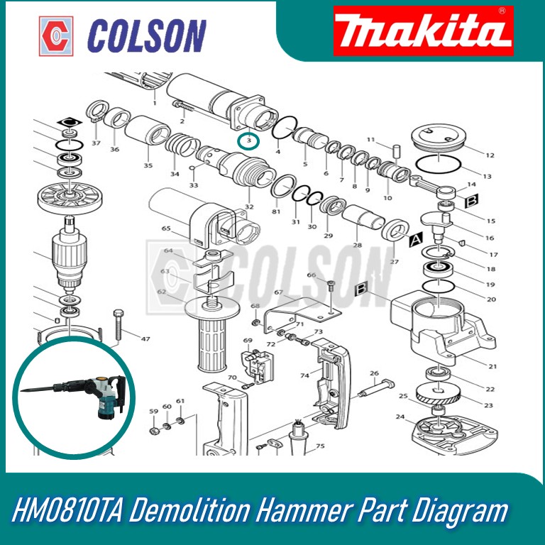 MAKITA Barrel Complete for HM0810TA Demolition Hammer 151457-9 マキタ