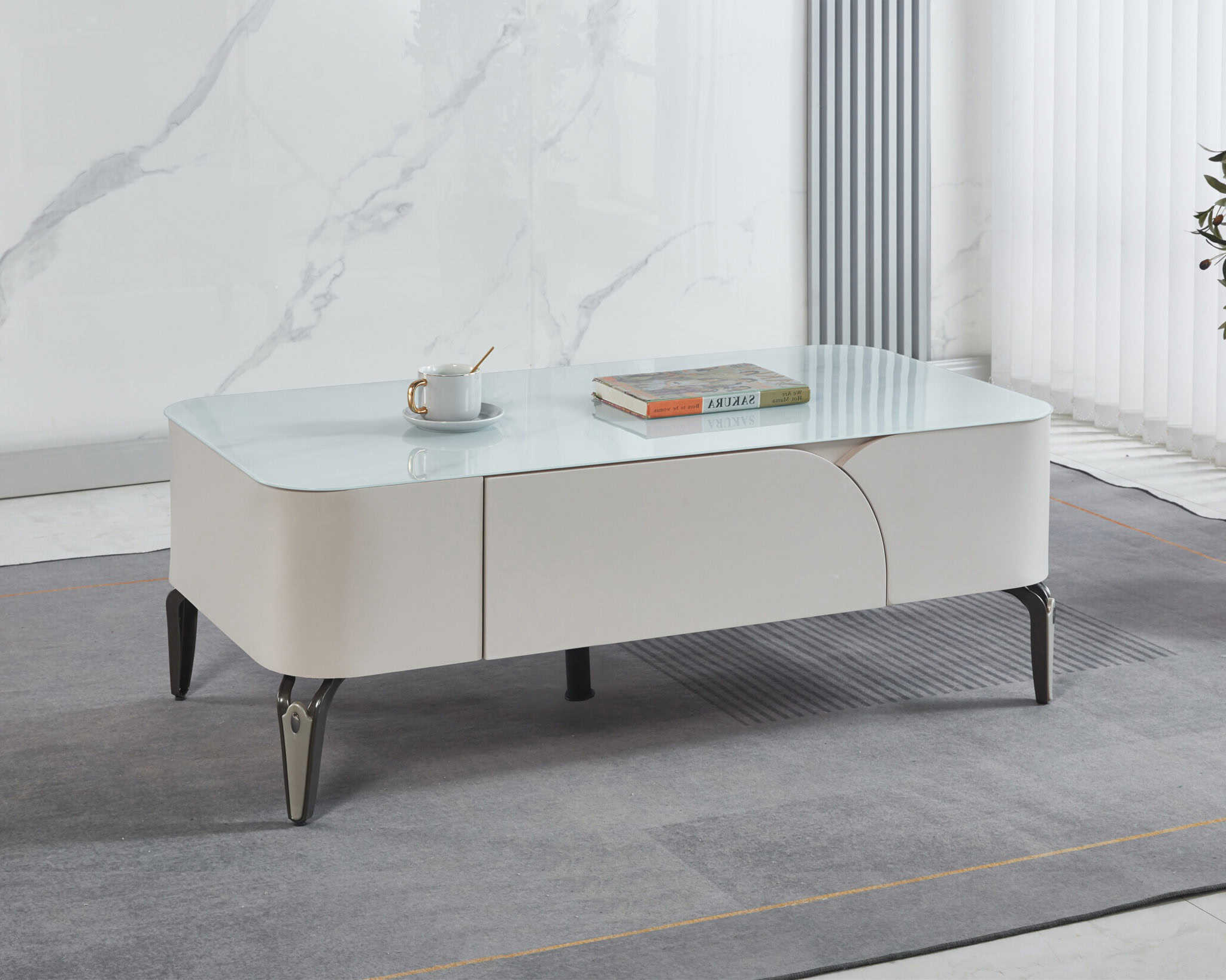 - Coffee Table Material : Glass Top, MDF, and Metal Legs