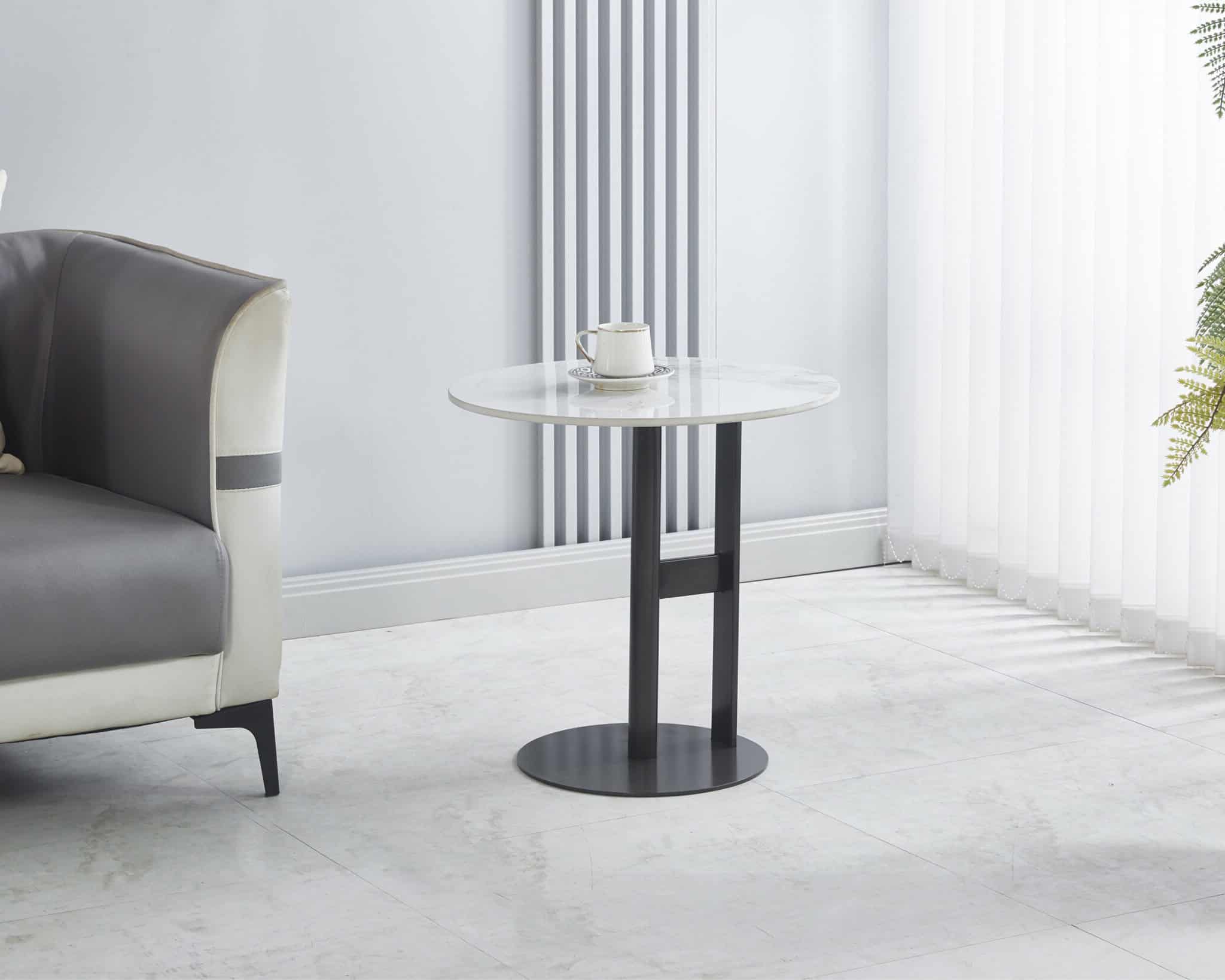• White Marble-Effect Top With Stylish Black Base