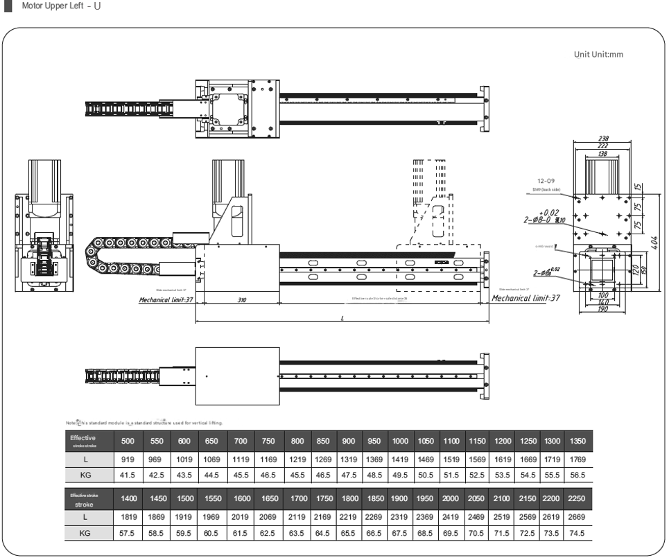 Stroke Pitch (mm) 500-2850mm / 50mm pitch