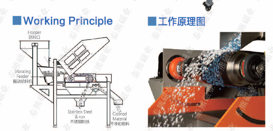 Reject: Impurities that contain weakly magnetic materials such as stones, iron & metal impurities & etc...
