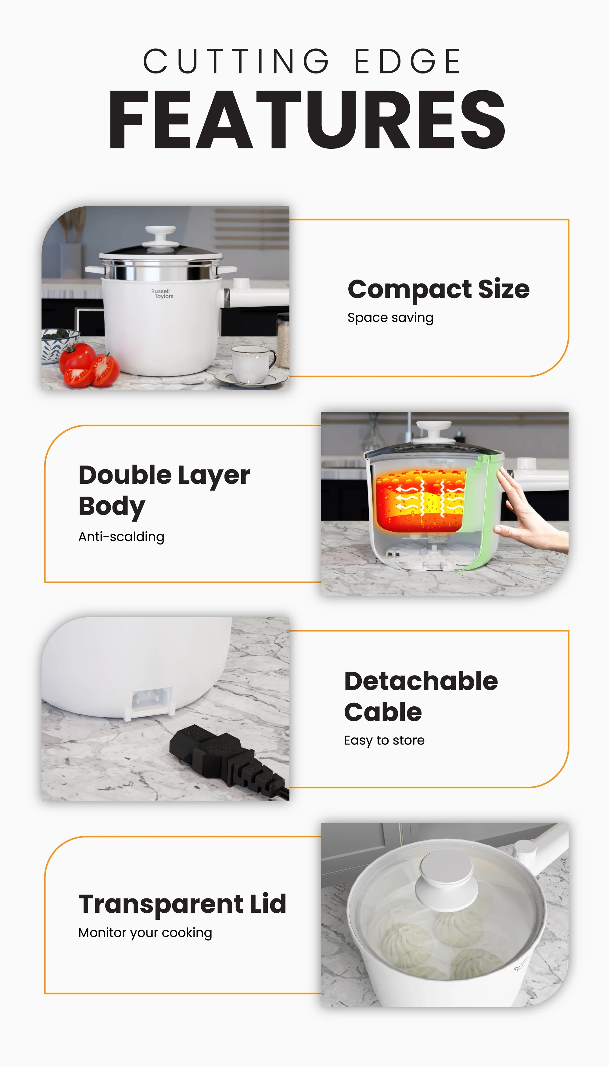 • This cooker uses an upgraded full heating plate which keeps your food heated evenly and longer. Compared to conventional pots, this non stick coating is more durable making it easier to cook and taste different types of food.