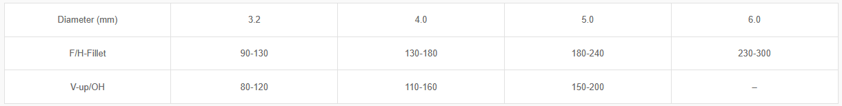 - Low diffusible hydrogen content, good crack resistance, good mechanical properties