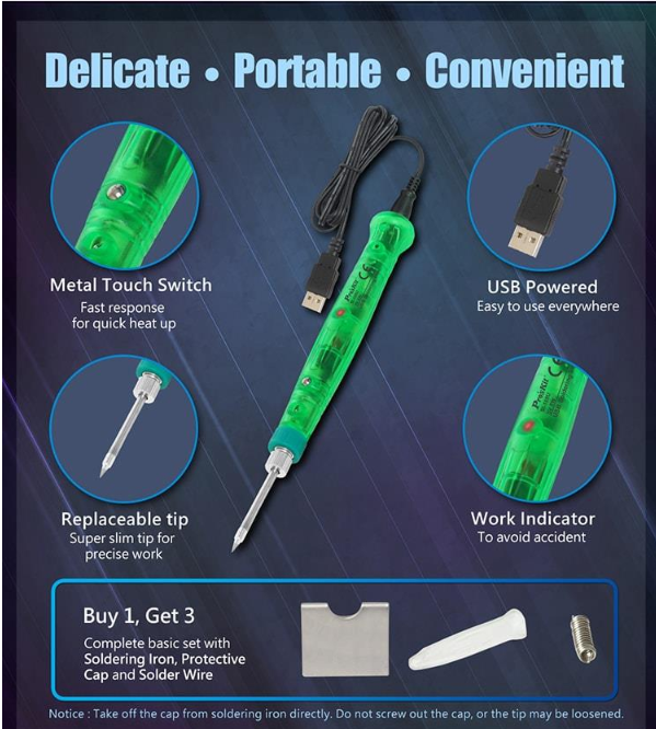 This is a fully functional USB powered soldering iron brings you more convenient.