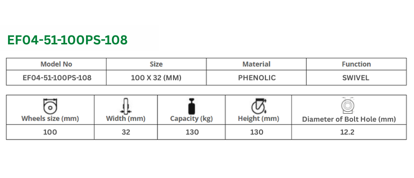 GLOBE Light Medium Duty Bolt Hole Phenolic Castor - EF04-51-100PS-108 (Size 3"~5")