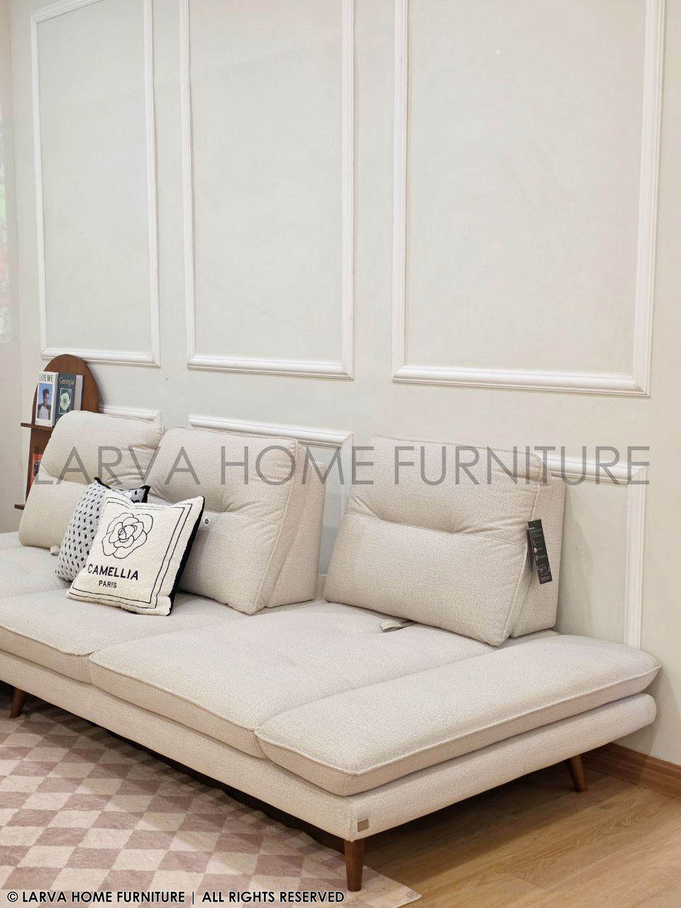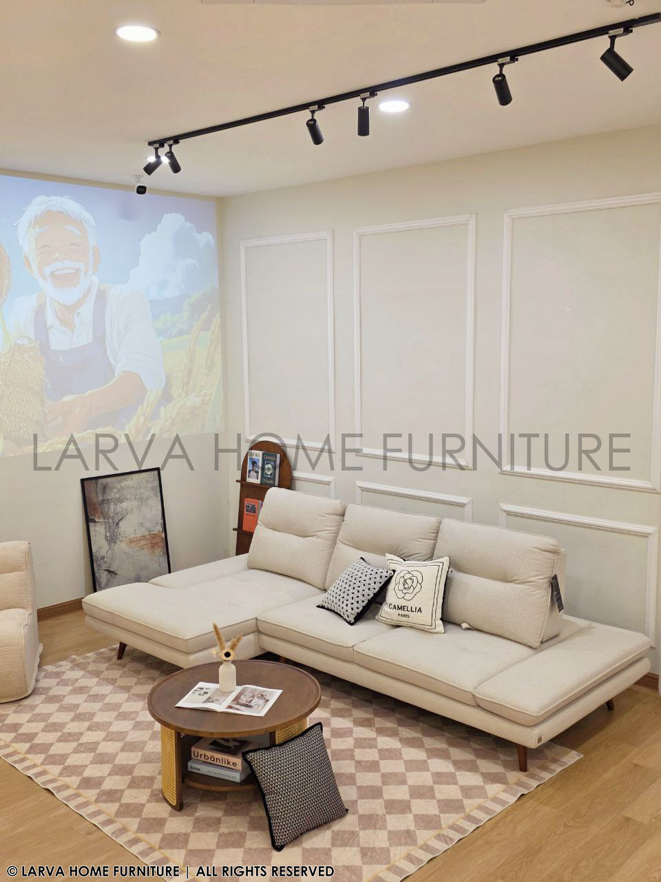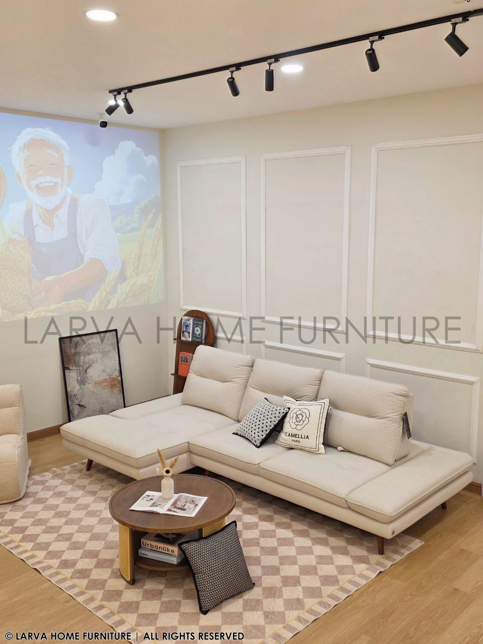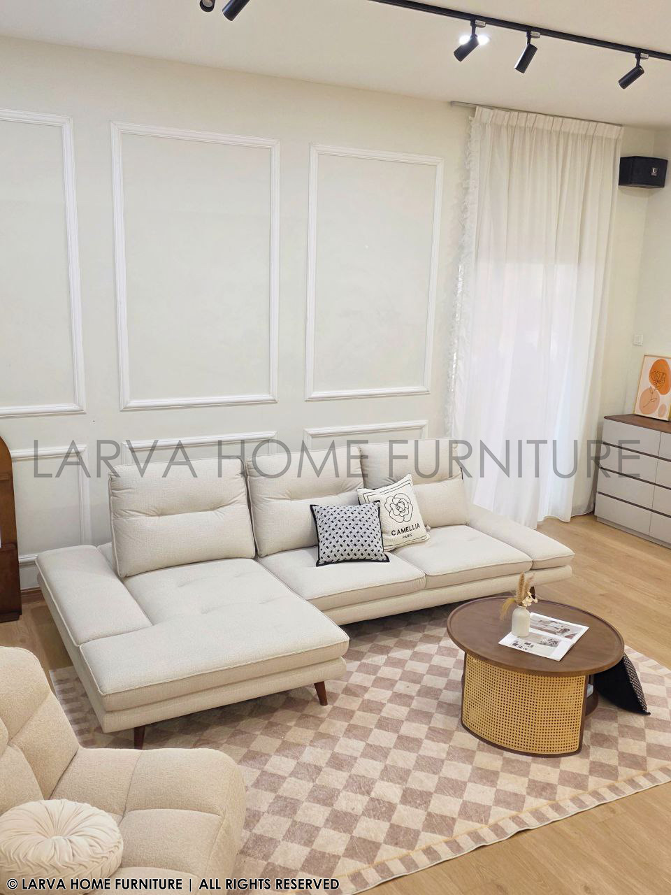 A sleek Fifa L-Shape Pushback Sofa crafted for effortless lounging. Its adjustable backrest lets you shift from upright comfort to full relaxation with one smooth push. Soft neutral tones bring a calm, modern luxury vibe to your living room, while the spacious layout makes it perfect for family moments.