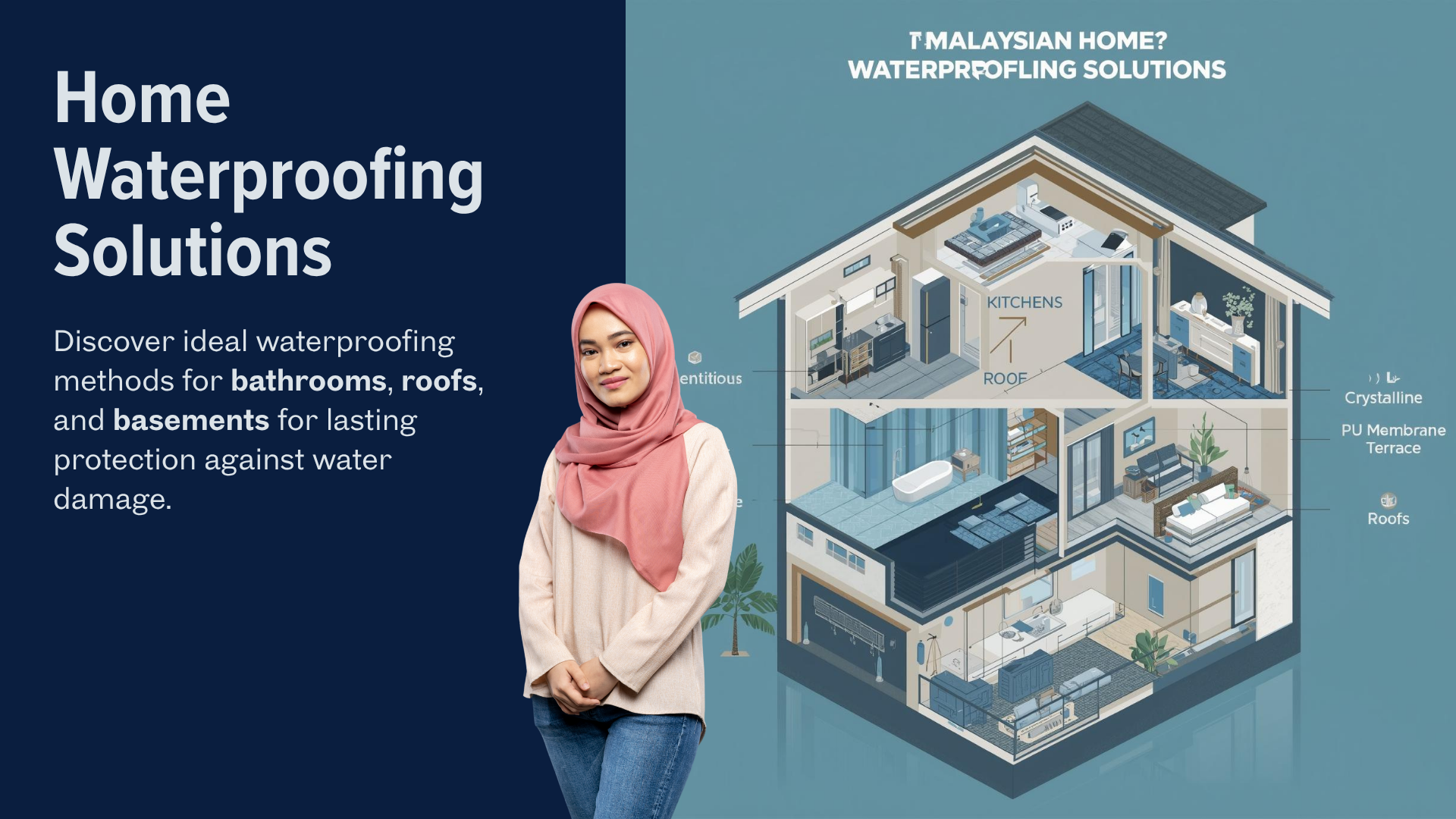• 水泥基防水材料性价比最高- 每平方英尺成本为 4.47-13.40 马币,使用寿命为 8-15 年,非常适合浴室和地下室等室内空间。