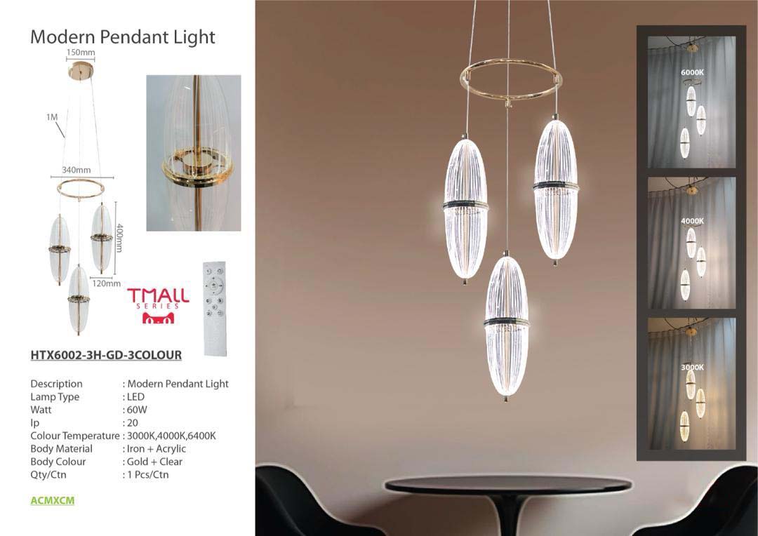 Multiple Pendant Light (HTX6002-3H-GD-3COLOUR)