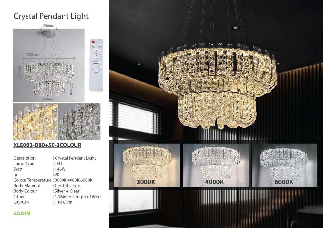 Crystal Pendant Light (XLE002-D80+50-3COLOUR)