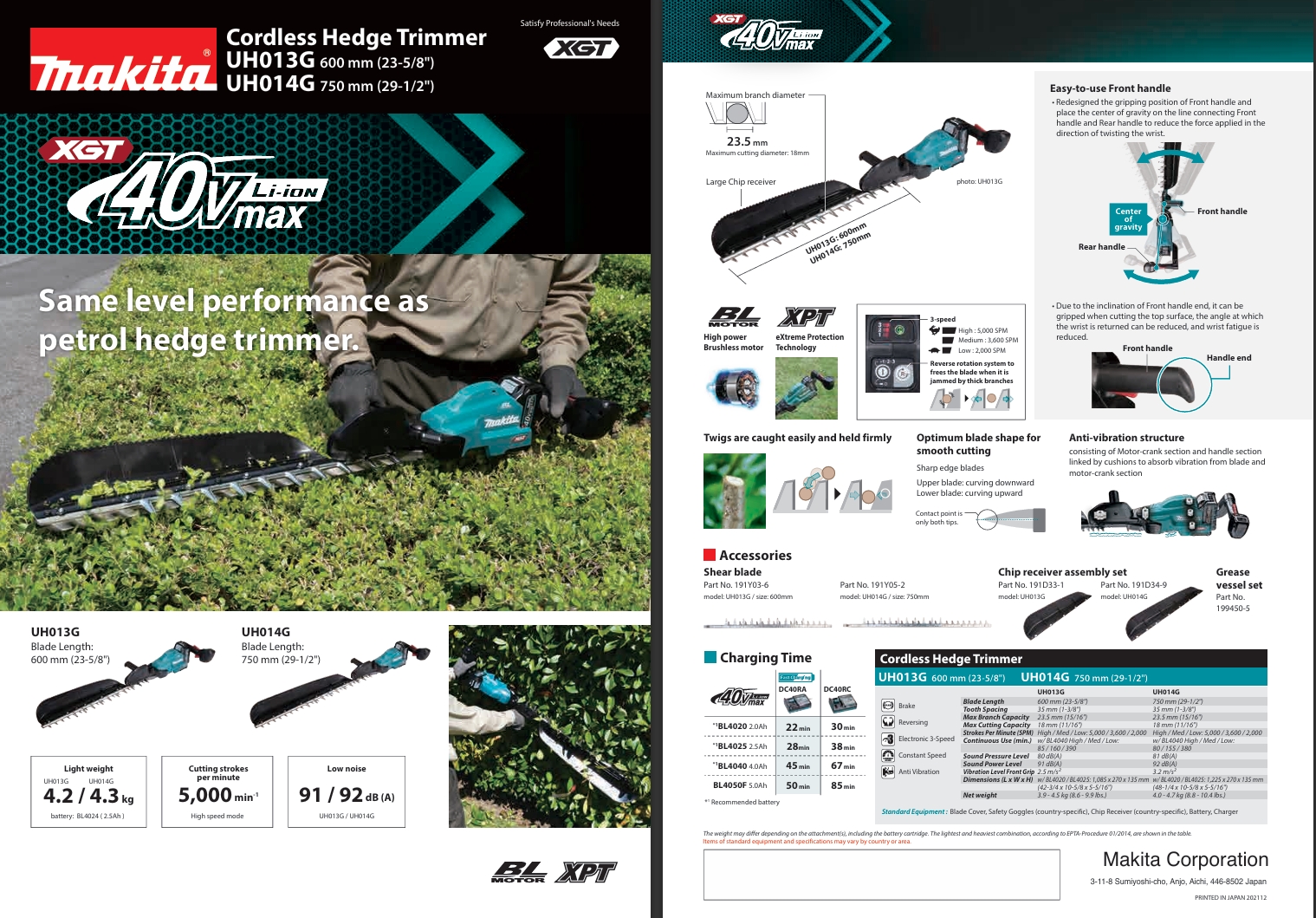 Increased cutting speed and torque for smooth and efficient cutting similar to those of engine hedge trimmers