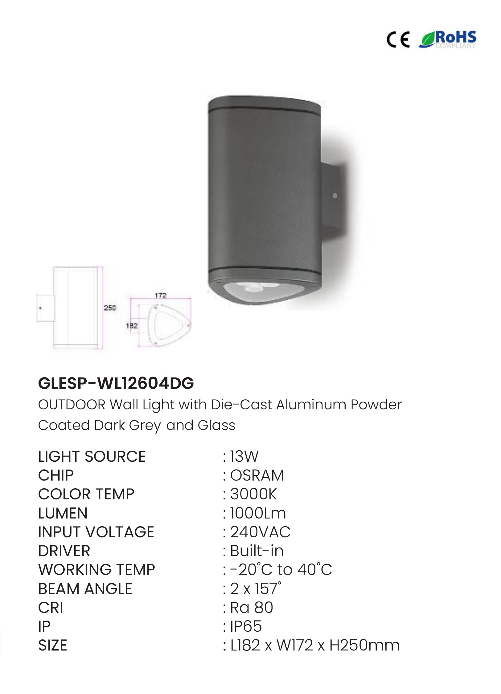 OUTDOOR Wall Light (GLESP-WL12604DG)