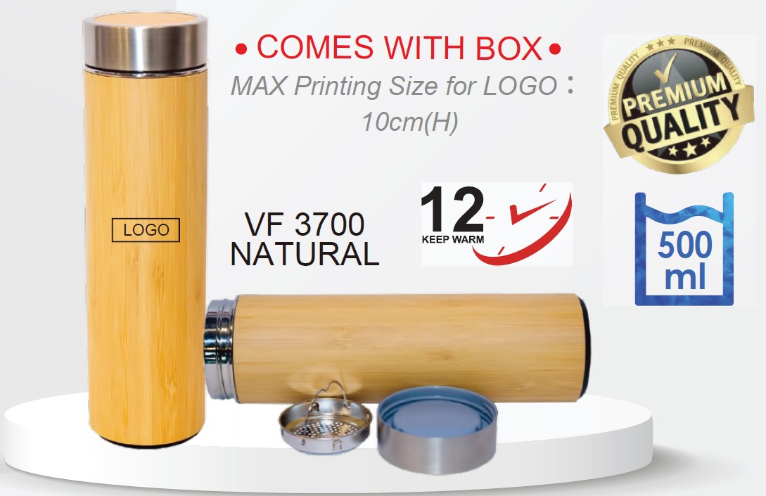 VF37 ― VACUUM FLASK STAINLESS STEEL 304 (INNER) + DOUBLE WALL / BAMBOO FINISH 500ml 400gsm (COMES WITH BOX) [PREMIUM QUALITY ] [12 HOUR HEAT RETENTION ]