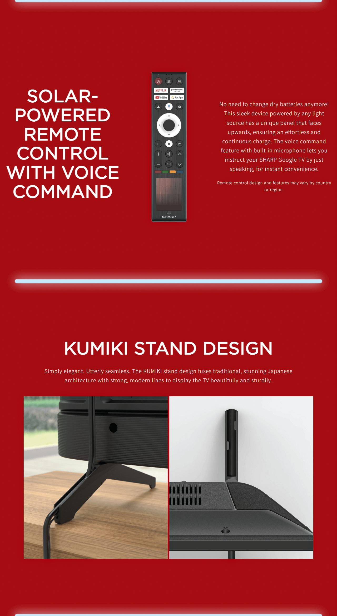 - Dolby VISION / ATMOS- Dolby Vision enhances the colour, contrast and brightness of the image with their HDR imaging technology.