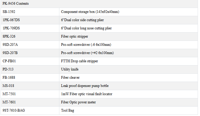 such as drop cable stripper, cleaver, cleaning tools and power meter.