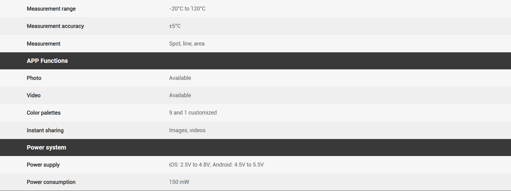 •Affordable price, powerful temperature analysis function like a professional thermal imager.