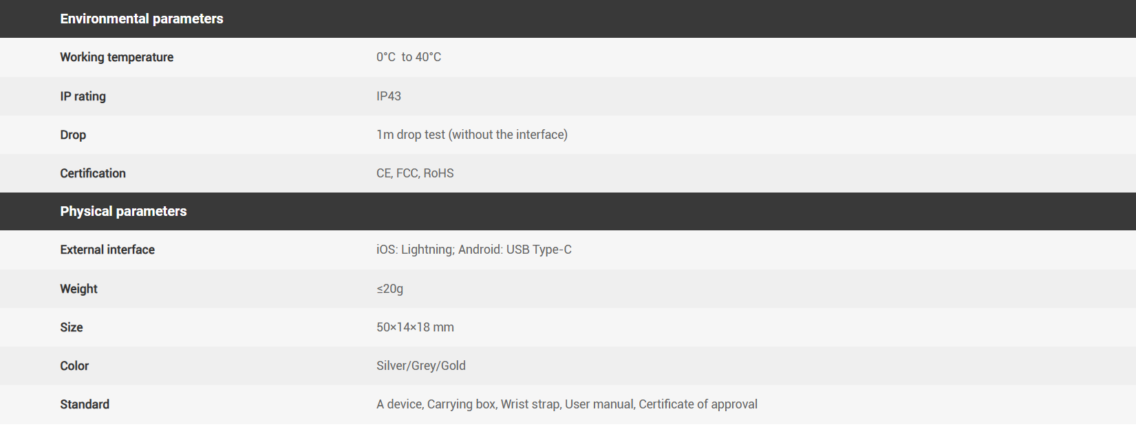 •Small size like a double A battery, weight is 20g only, and with a protection carrying box