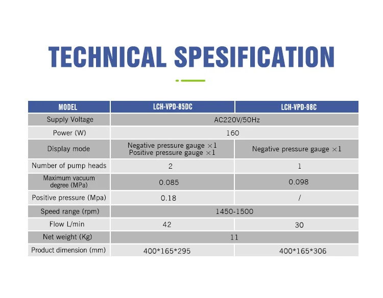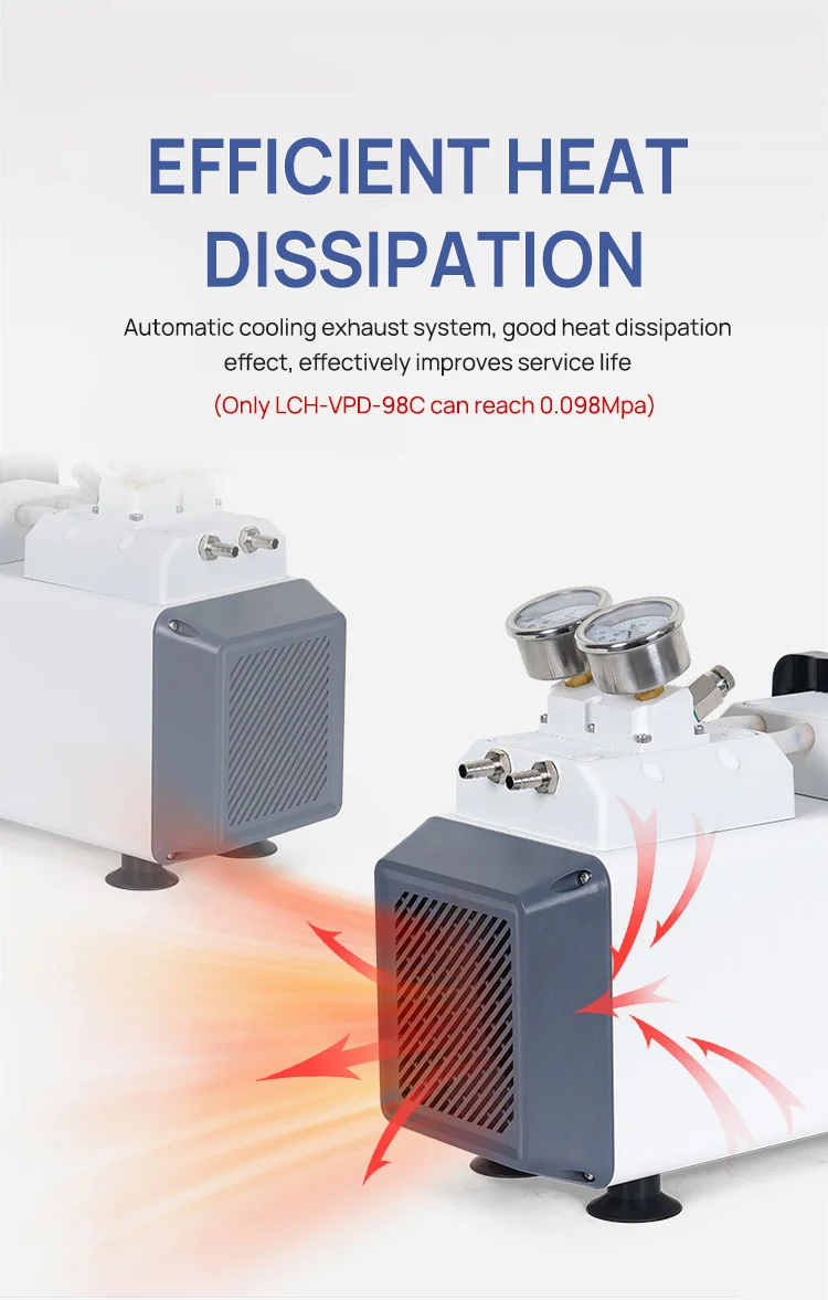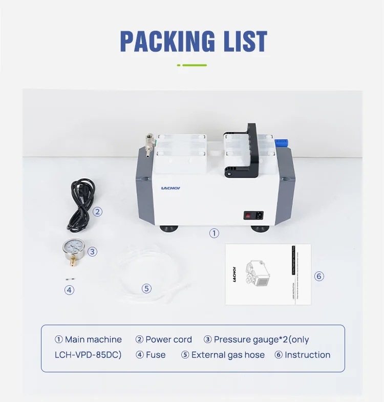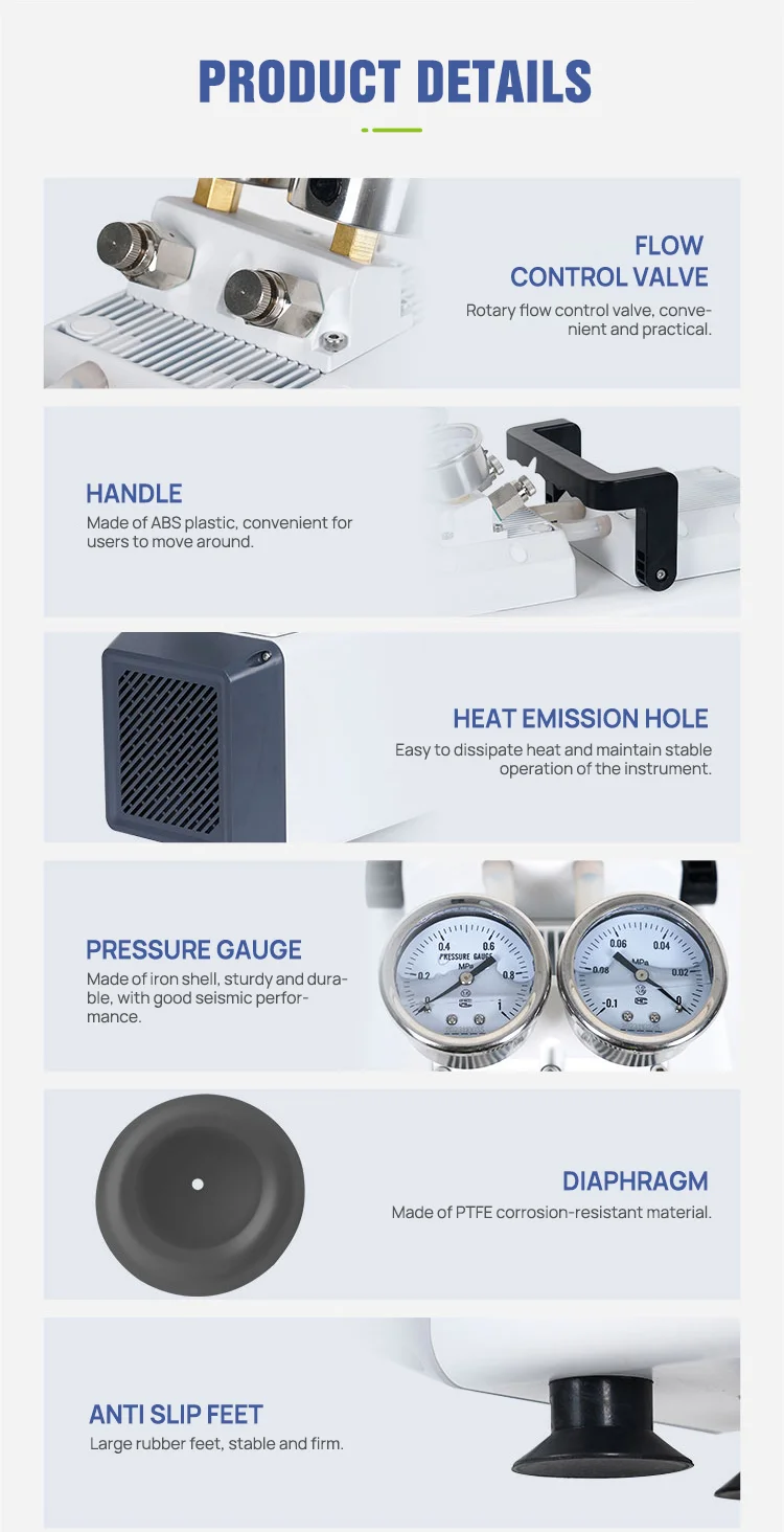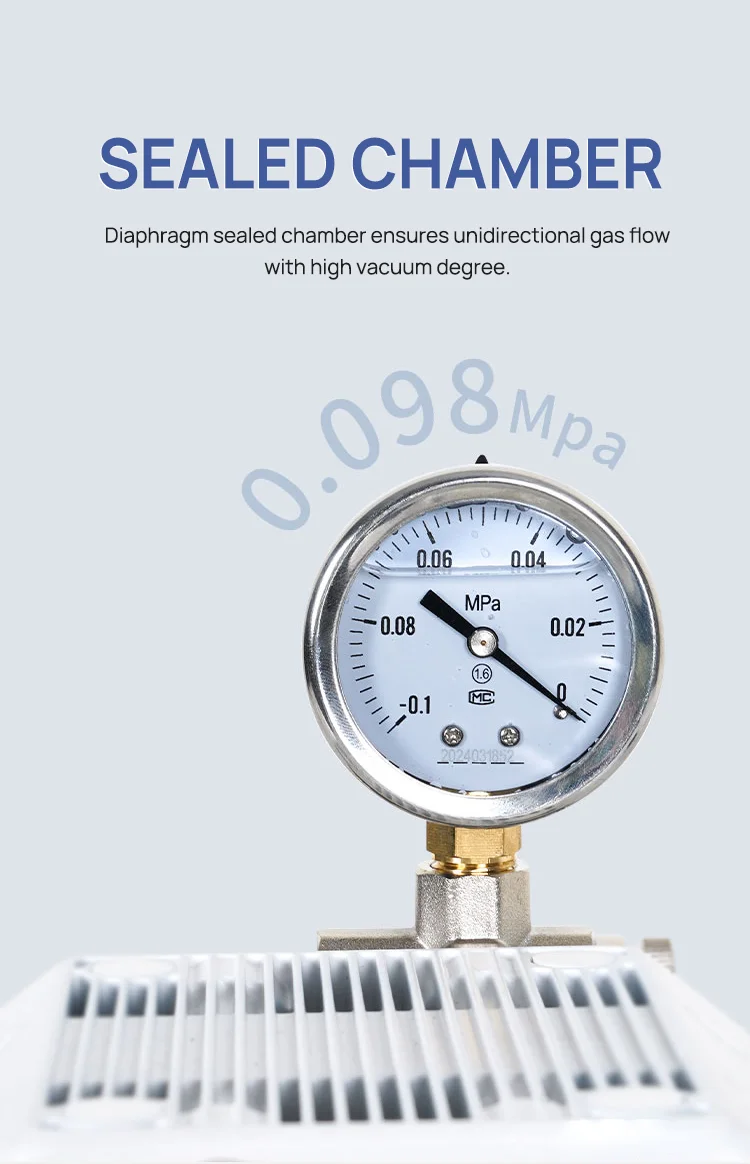1. Thickened outer wall, oil-free bass, adjustable pressure, and stable vacuum;2. Adopting frictionless membrane motion, it generates less heat, has no frictional loss, andextends its service life: