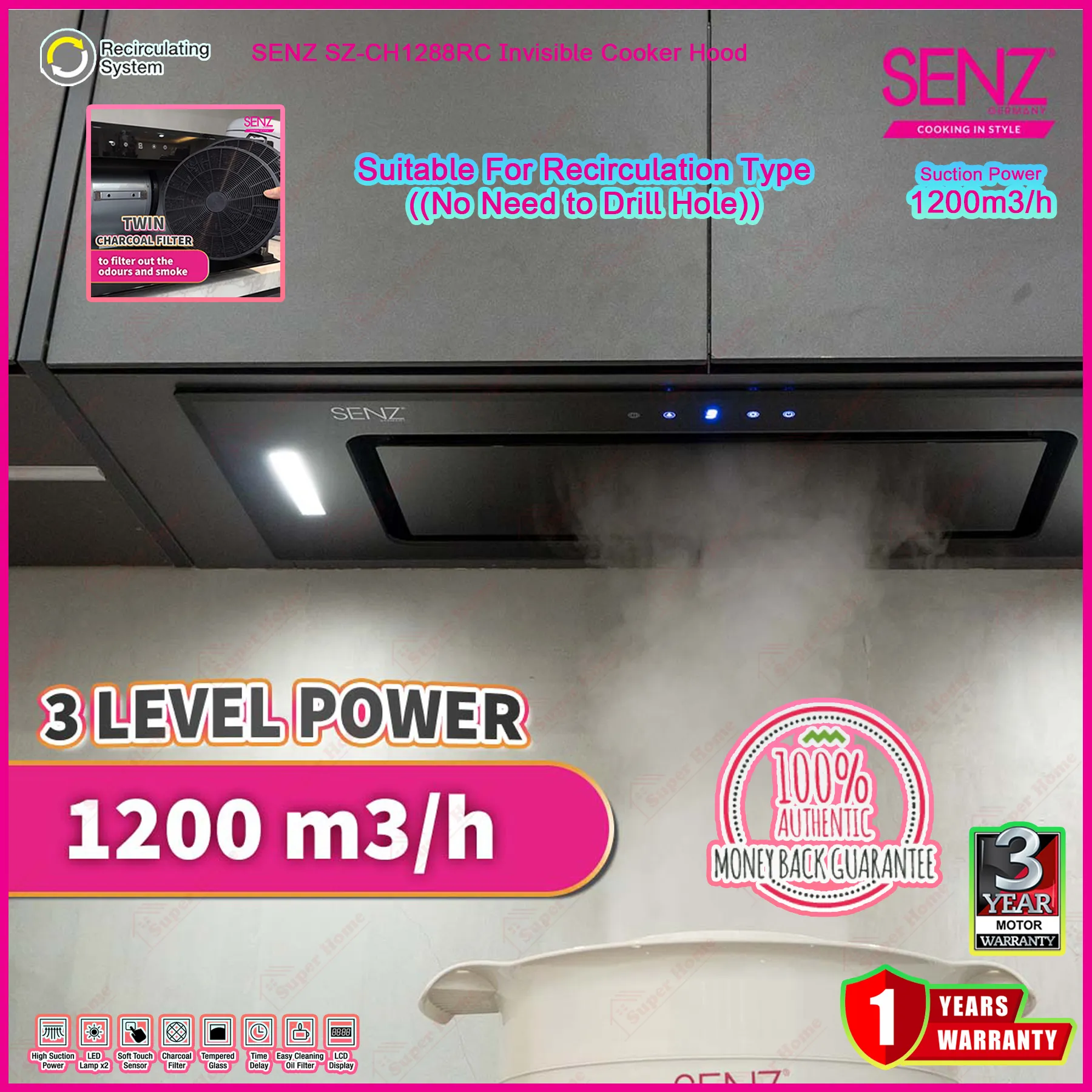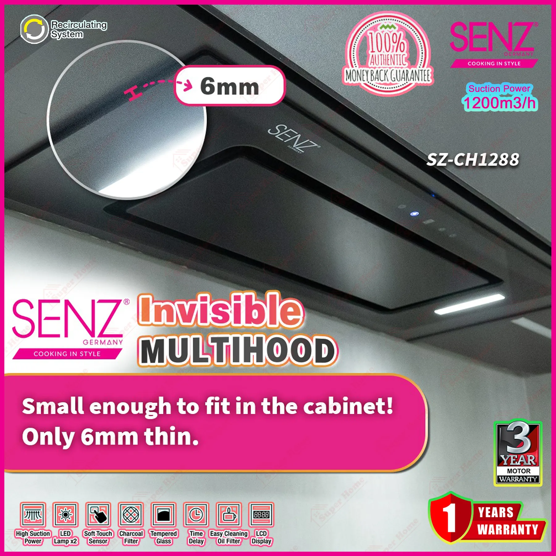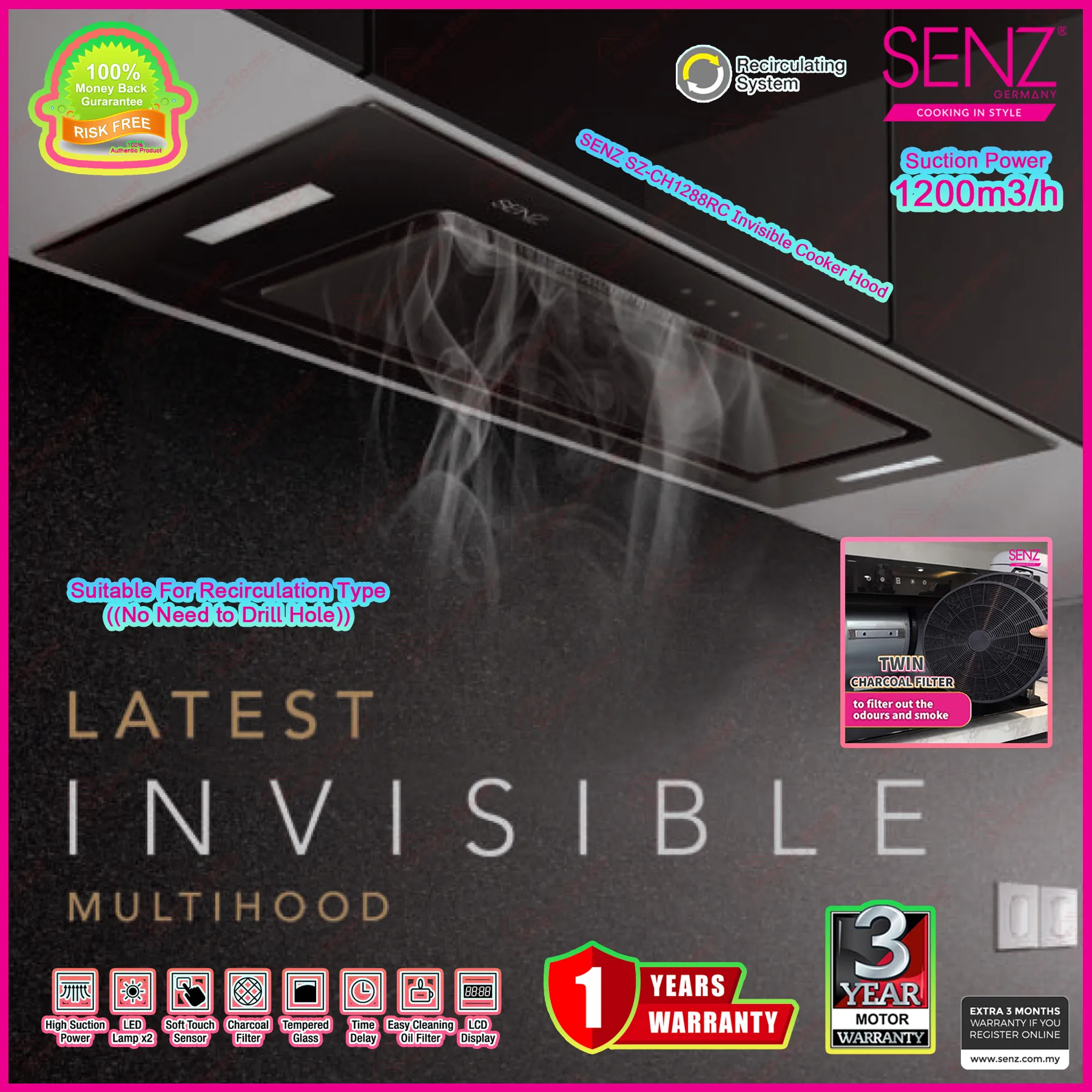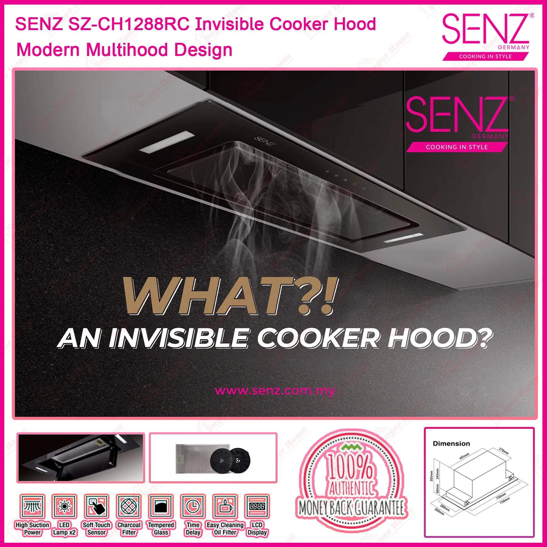 1 x Senz Invisible Cooker Hood SZ-CH1288RC-B Designer Hood Suction power 1200m3/h (Exhaust / Recirculation option) - Suitable For Recirculation Type