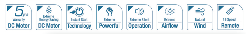 Elevate your space with the REZO Signature HILTON 64". Features 18-speed (9F+9R) DC motor, 3 ABS blades, and a 24W 3C LED light. Available in Matt Black/White/Dark Wood.