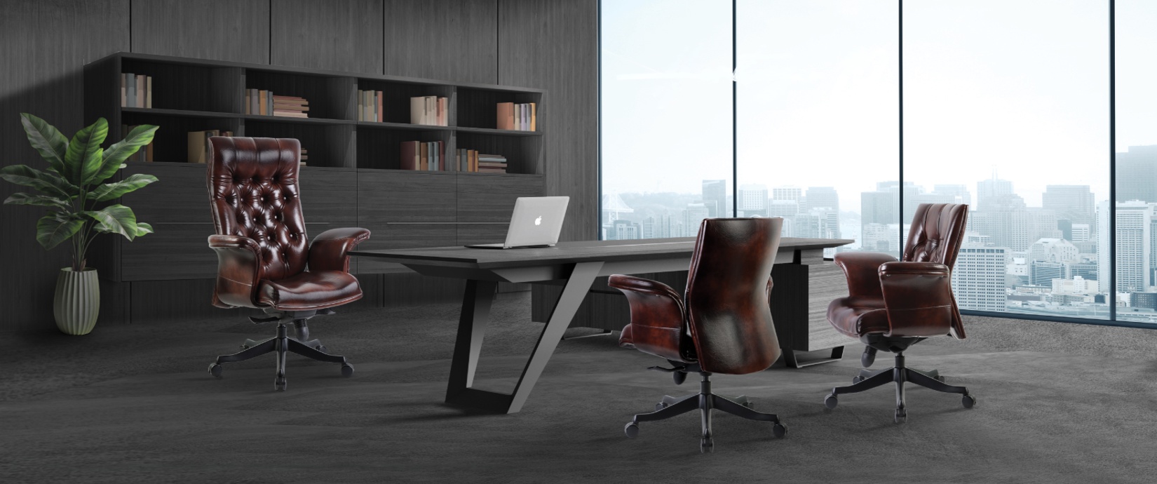 Presidential Chair, crafted with high-grade PU leather, available in matte or glossy finish, for a vintage yet elegant look that enhances any office interior.