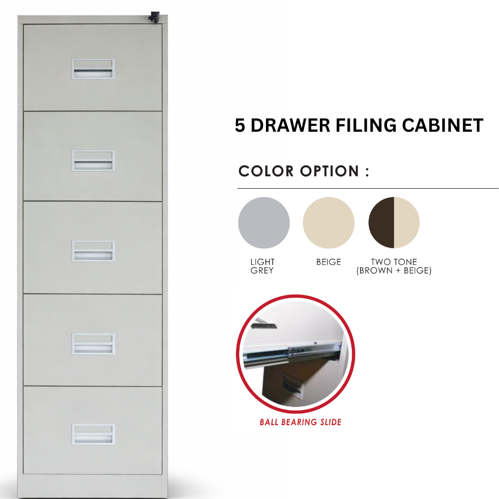 This 5-Drawer Steel Filing Cabinet is designed for vertical document storage in offices, schools, and administrative environments. With multiple drawers and a compact footprint, it allows efficient organisation of files while maximising storage capacity.