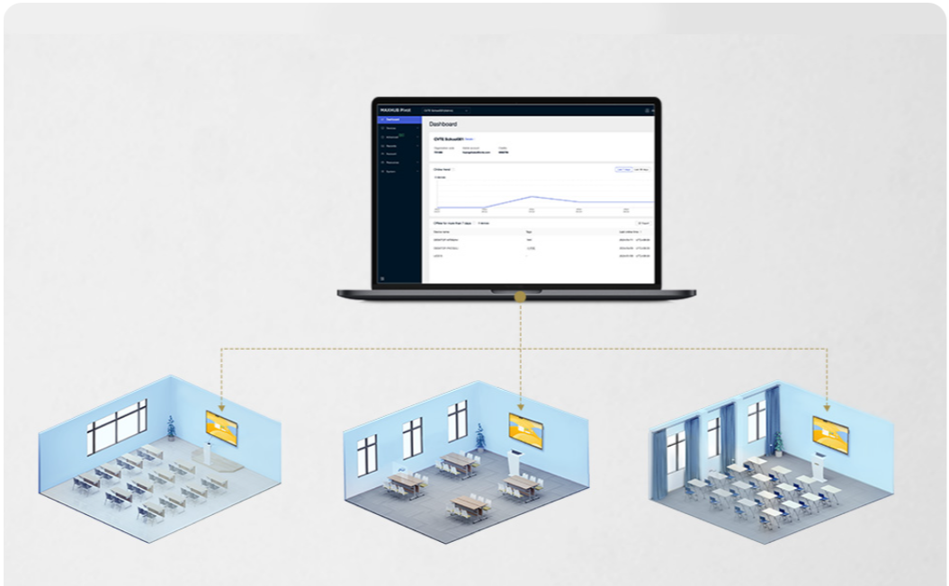 MAXHUB Pivot now offers a robust cloud-based device management platform and a streamlined communication tool. Push class schedules, important notices, and engaging content (images, videos, audio) to all devices with the new program list feature. Plus, enjoy instant device access and control, maintenance tools, and enhanced security protocols.